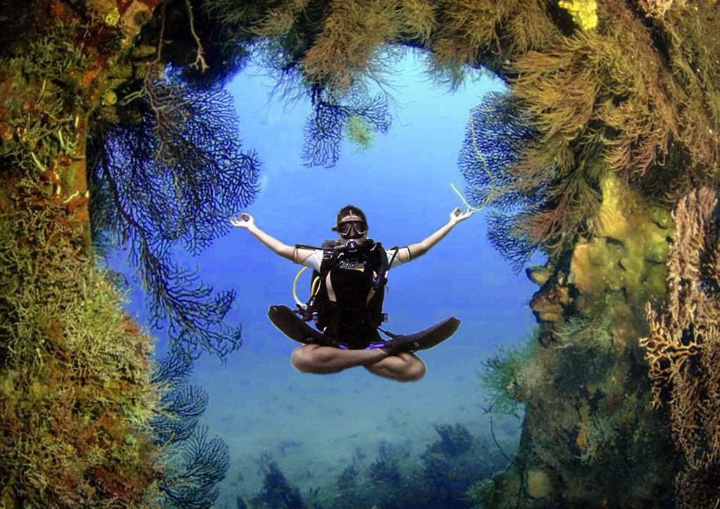 The underwater experience includes multiple breathing exercises, practised on the boat beforehand to aid with buoyancy control and mindfulness. Controlled yoga positions are demonstrated and held underwater. This is followed by a relaxing and scenic dive tour, with a focus on breath and mindfulness, allowing guests to engage and absorb the underwater surroundings. Benefits include slowing down the heart rate, lowering blood pressure and creating a deep feeling of calm, as well as reducing overall stress and anxiety.